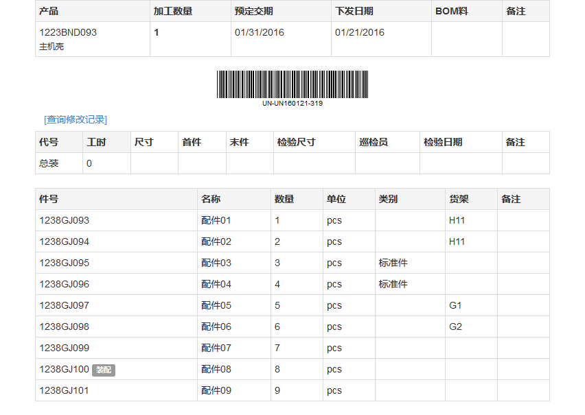 下面是生产单的例子。