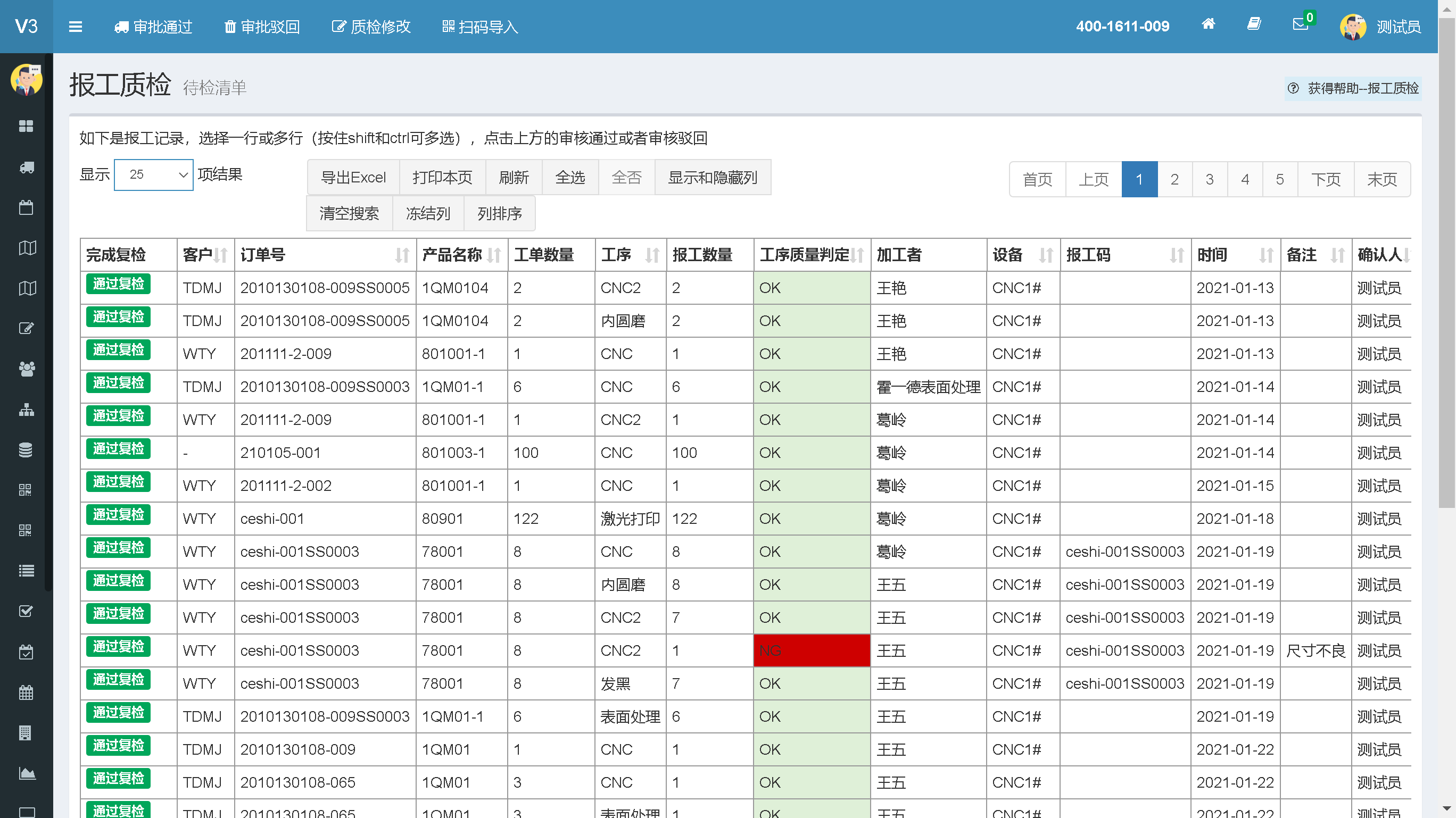 2、需要生产看板可以实时监控生产流程的情况,管理生产进度。另外还有质量控制方面的问题,模具零件精度高、工序多、价格昂贵,一旦有没有做质量检测,不良品继续流转加工,会造成大额损失。所以需要质量检测模块。