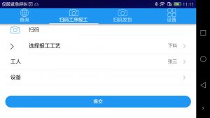 下面就是车间工人需要做的事情。产品加工到什么工序,就用app扫码报工。现在工人都有手机,用PDA比较昂贵,普通手机也可以很好的识别二维码。