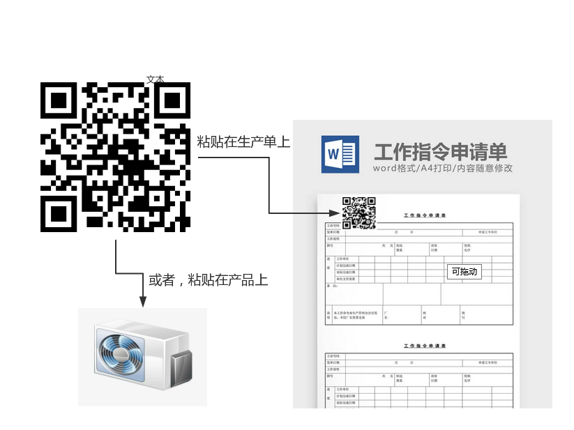 然后通過打印機打印出二維碼,貼在產(chǎn)品,或者生產(chǎn)指令單,或者出貨標(biāo)簽上面