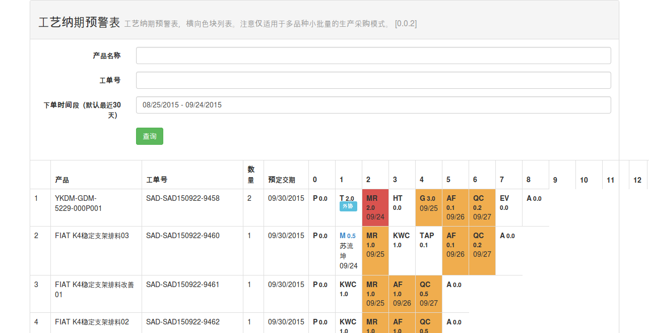 “工序納期預警報表”只針對計時制的散件生產。搞機械加工的都知道,工藝步驟復雜很容易被“遺漏”,只能等到要出貨的那刻才會發現拖期,這對生產管理十分不利。