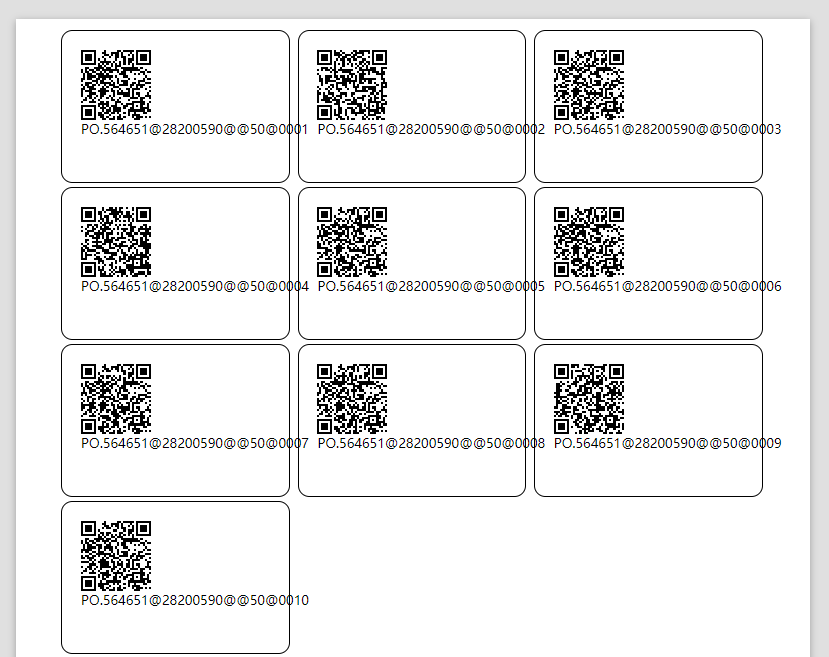 按照生成规则,系统会自动输出多个二维码。打印出来后,可以人工贴标,或者机器贴标。