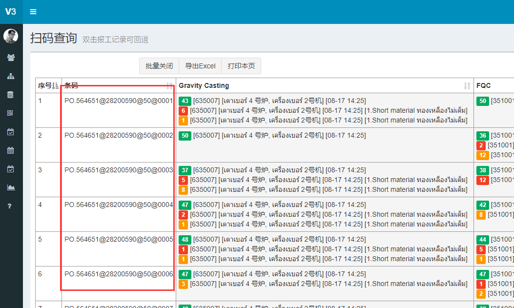 2. 一个标签,如果上道工序没有记录,则本工序不能扫码。防止跳工序。