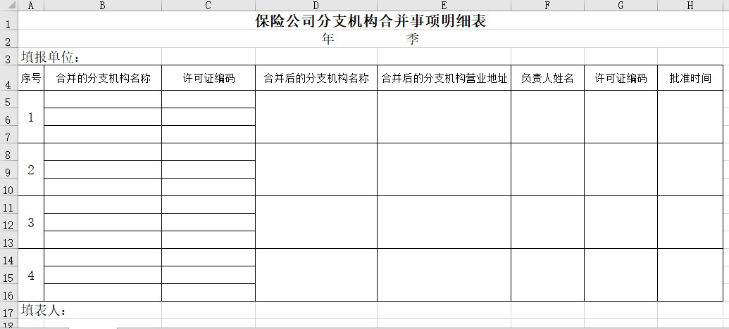 保險公司分支機構合并事項明細表