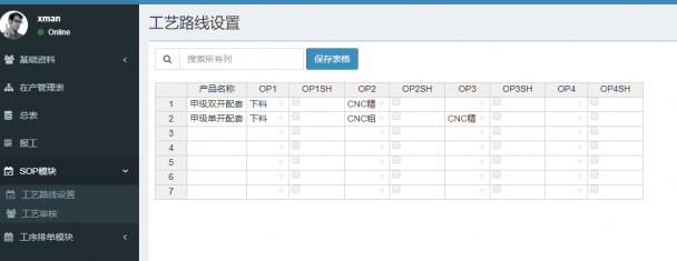 如果每個產品的工藝路線不同,可以用此模塊來實現。具體做法是:在下單之前,把每個產品的工藝路線維護在統一的表格內;下單后,報工順序及數量必須按照工藝路線的先后順序來執行。