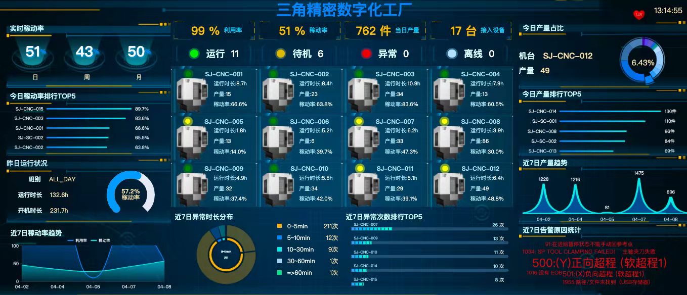 - 設備稼動率、產量、報警、維修等。